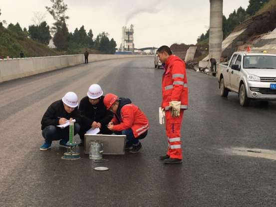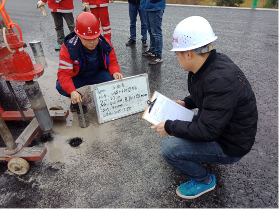 此次預驗收檢查組由業主公司、監理駐地辦、監理試驗室、總包部以及第三方檢測機構代表共同組成。嚴格按照交驗的技術標準及設計要求進行,對K52+601.6~K59+125處全幅段落路面施工的寬度、橫坡、厚度、壓實度、滲水系數等指標嚴格檢測。